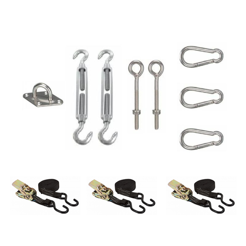 Om uw schaduwdoek zo perfect mogelijk op te hangen kunt u gebruik maken van onze bevestigingsmaterialen, waaronder de RVS plaat met oog. Dit zorgt voor een perfecte montage.